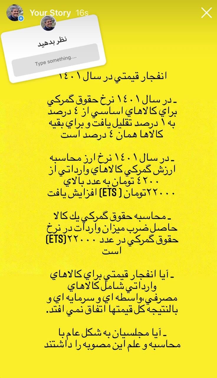 نماینده مردم گچساران در مجلس دهم با انتشار یک استوری به مصوبه حذف ارز 4200 تومانی واکنش نشان داد.