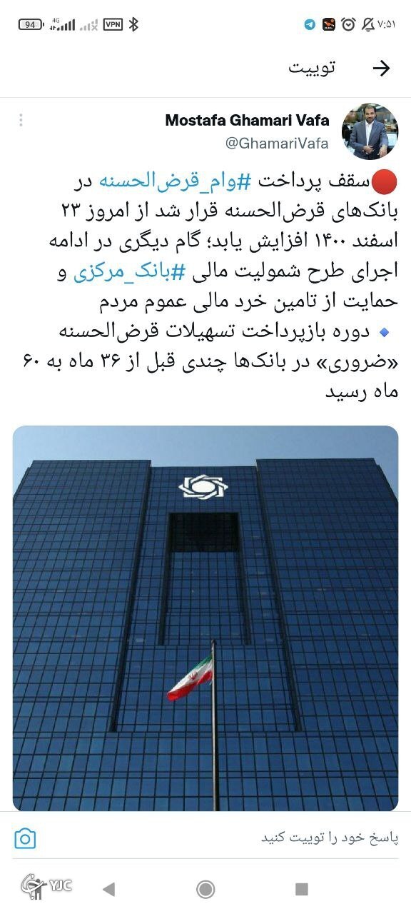 به گزارش سایت طلا ، بانک مرکزی با انتشار توئیتی اعلام کرد: «سقف پرداخت وام قرض الحسنه در بانکهای قرض الحسنه قرار شد از امروز ۲۳ اسفند ۱۴۰۰ افزایش یابد؛ گام دیگری در ادامه اجرای طرح شمولیت مالی بانک مرکزی و حمایت از تامین خرد مالی عموم مردم است. دوره بازپرداخت تسهیلات قرض الحسنه " ضروری" در بانکها چندی قبل از ۳۶ ماه به ۶۰ ماه رسید.»