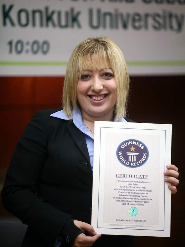 این روزنامه افزود: عالیه در سن 14 سالگی مدرک دکترایش را گرفت و به تازگی که به اخذ عنوان پروفسوری نایل شده، قرار است در دانشگاه کونکوک کره جنوبی به عنوان استاد، تدریس کند.