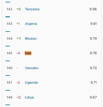 همچنین طبق این آمار، اینترنت ثابت ایران در حال حاضر از وانواتو و اوگاندو سریعتر واز بوتان و الجزیره کندتر است.