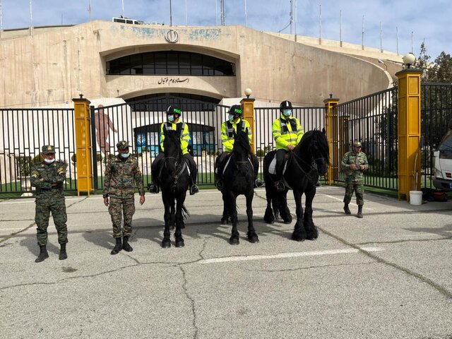حدود ۷ هزار تماشاگر به استادیوم آزادی آمدهاند تا داربی ۹۸ را از نزدیک تماشا کنند. تماشاگران همچنان از دربهای شرقی و غربی و از طریق گیتهای مربوطه در حال ورود به استادیوم هستند. در ساعات اولیه باز شدن دربهای استادیوم، جمعیت زیادی در گیتها وجود داشت اما در حال حاضر جمعیت کمتری وجود دارد.