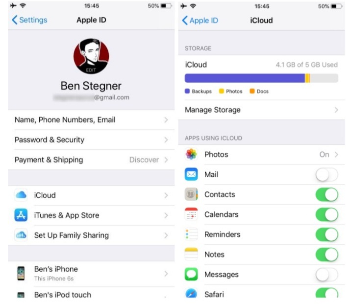 در iOS برای غیرفعالسازی همگام سازی خودکار اپ‌های بومی باید به تنظیمات بروید، روی اسم‌تان و سپس آی‌کلود ضربه بزنید. حالا تنها کاری که باید انجام دهید، انتخاب برنامه‌هایی است که نمی‌خواهید همگام سازی شوند.