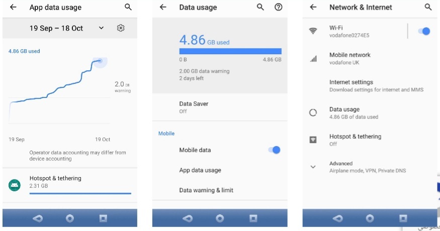 اگر برنامه‌ای بیش از حد دیتا مصرف می‌کرد، روی Data Usage ضربه بزنید و سپس Background data را غیرفعال کنید. با توجه به تعداد برنامه‌هایی که روی گوشی‌تان نصب کرده‌اید، این فرایند می‌تواند زمانبر باشد، بنابراین صبور باشید.