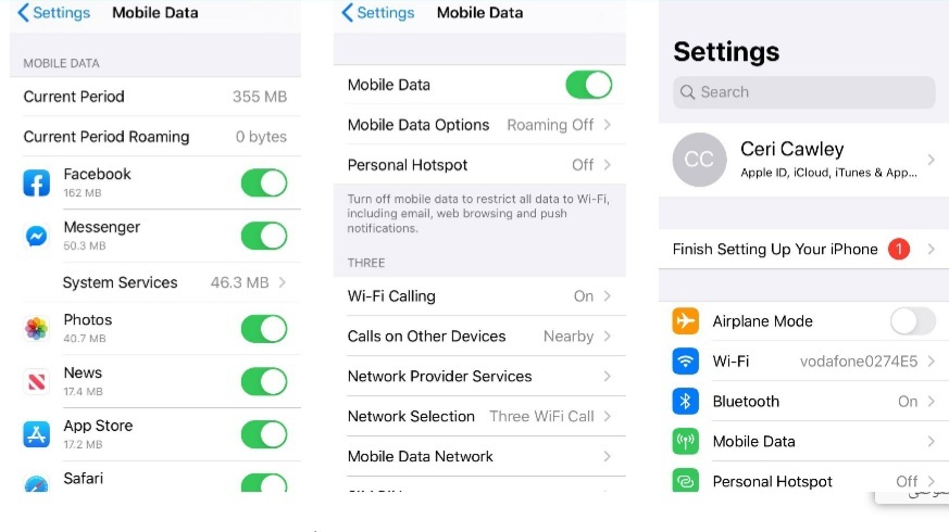 برای جلوگیری از مصرف بیش از اندازه اینترنت سیم کارت در آیفون باید به تنظیمات و سپس Mobile Data یا Cellular بروید. در اینجا می‌توانید میزان مصرف کلی دیتا و همچنین اپ‌ها را مشاهده کنید.