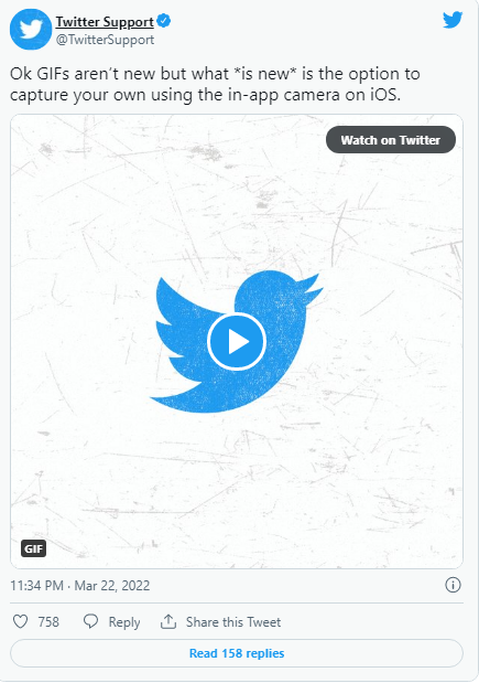 به گزارش موبوایران، توئیتر به کاربران iOS این امکان را داد تا مستقیماً از دوربین درون برنامهای، ویدئو خود را به صورت گیف ضبط کنند. ضبط مستقیم فایلهای GIF در توئیتر، دقایقی از زمان شما را صرفهجویی میکند تا یک ویدئو از قبل ضبطشده طولانی از آلبوم گوشی خود را در سایر پلتفرمهای GIF مانند GIPHY تبدیل کنید.
