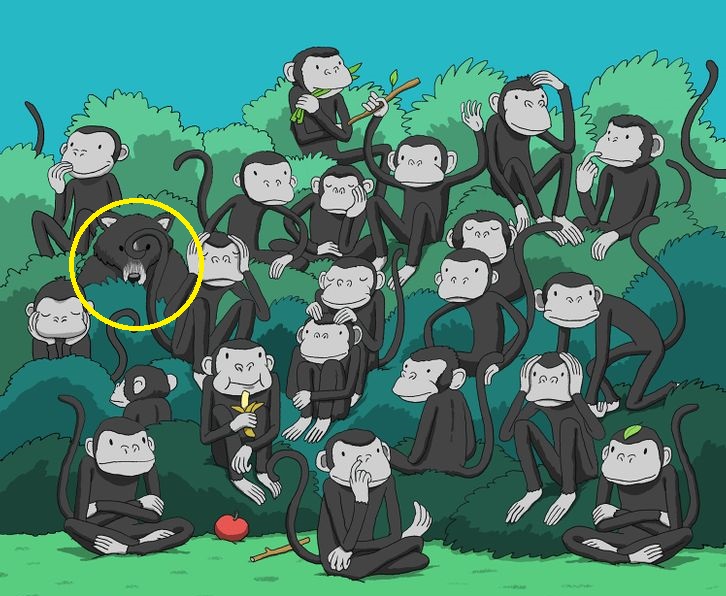 در تصویر امروز شما باید خرس را از میان این میمون ها پیدا کنید. همچنین این تست را می توانید همراه با دوستان تان انجام دهید.