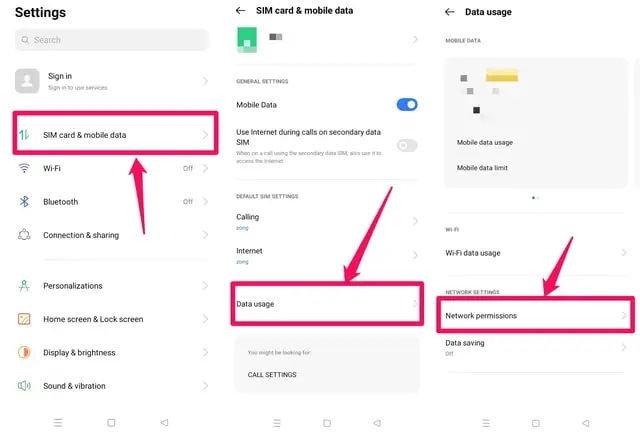 قدم دوم: در صفحه باز شده باید روی گزینه “SIM card and mobile data” کلیک کنید.