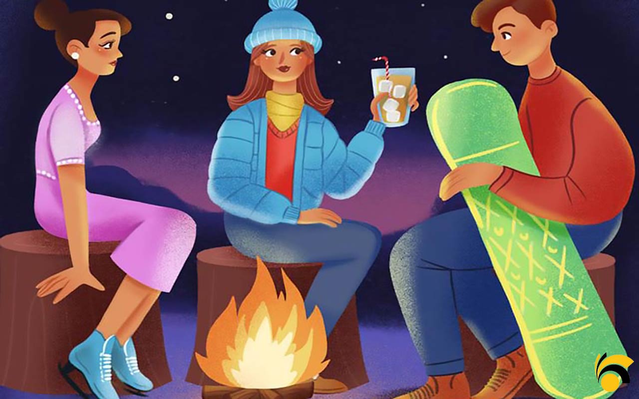 مرد از اسکی برگشته بود. اما وقتی دوباره با دوستانش جمع شد، وسایلش را چک کرد و متوجه شد که غذای او گم شده است، بنابراین از دوستانش پرسید که آیا چیزی در مورد آن میدانند. زن اول گفت که تمام روز را اسکیت کرده است و دیگری گفت که از صبح کنار آتش همین نوشیدنی را می خورد. مرد بلافاصله لبخند زد زیرا می دانست که یکی از آنها دروغ می گوید. اما چه کسی دروغ گفته؟ (تصویر را با دقت نگاه کنید و پاسخ دهید.)
