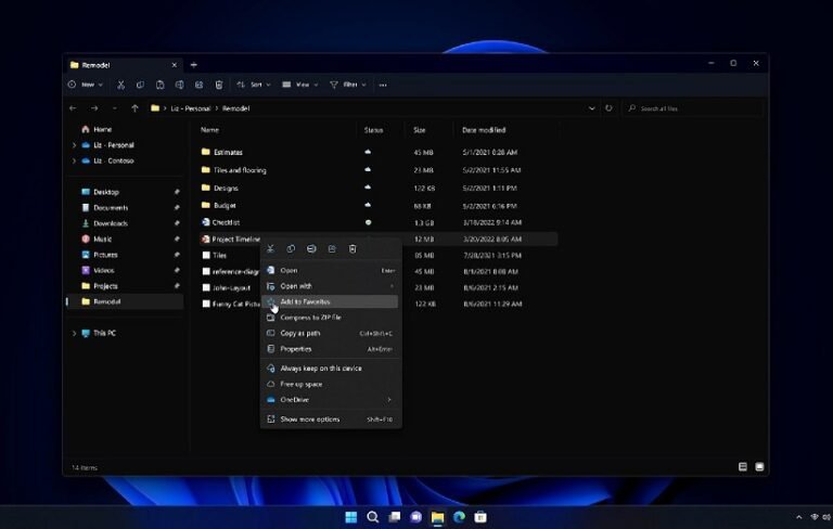 علاوه بر این قابلیت بسیار کاربردی، مایکروسافت تغییرات دیگری را نیز برای فایل اکسپلورر ویندوز ۱۱ در نظر دارد. در همین راستا، مایکروسافت تغییراتی نظیر پوشههای معمولی دسترسی سریع (Quick Access)، اسناد مشاهده شده اخیر و گزینه دلخواه (Favorites) جدید را برای کاربران به ارمغان خواهد آورد. همچنین بهزودی کاربران میتوانند از منوی کلیک راست یک فایل، آن را به موارد دلخواه خود اضافه کنند تا در صفحه اصلی فایل اکسپلورر به صورت پین شده ظاهر شود. مایکروسافت حتی گزینههای اشتراکگذاری فایلها را نیز دستخوش تغییراتی کرده تا کاربران بتوانند آنها را از طریق برخی برنامهها مانند مایکروسافت تیمز، اوتلوک و واندرایو برای سایر کاربران به اشتراک بگذارند.