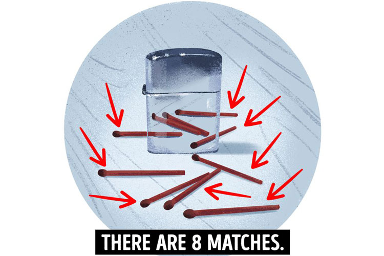 با دقت به تصویر نگاه کنید و بگویید چند چوب کبریت در تصویر وجود دارد؟ ابتدا حدس بزنید بعد به پایین صفحه بروید.