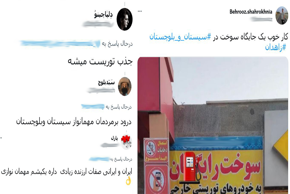 تصویر یک بنر در یکی از جایگاه عرضه سوخت در سیستان و بلوچستان، در شبکههای مجازی منتشر شده که نشان میدهد، این جایگاه طی ایام نوروز برای گردشگران خارجی سوخت رایگان توزیع کرده که واکنشهای متفاوتی به همراه داشت.