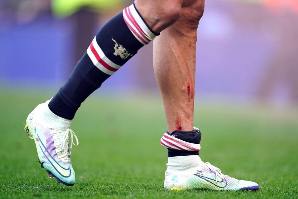 کریستیانو رونالدو، فوق ستاره شیاطین سرخ در جریان این بازی در اثر برخورد با بازیکن حریف از ناحیه ساق پا دچار جراحت و مصدومیت شد.