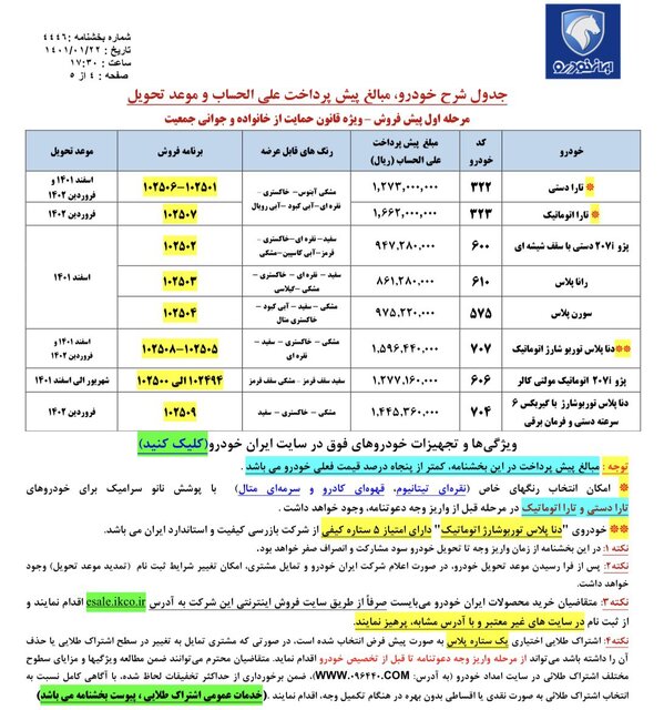 البته شایان ذکر است ایرانخودرو برای بار چهارم در راستای حمایت از قانون جوانی جمعیت اقدام به برگزاری طرح فروش میکند اما این مرحله، اولین پیشفروش این گروه خودروسازی در راستای این قانون است و سه مرحله قبلی بصورت فروش فوقالعاده برگزار شده بود.