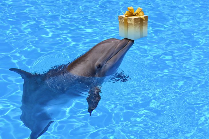 2-دلفین های نر به دلفین های ماده هدیه می دهند. آنها به ماده ها اسفنجی را به عنوان نمادی از نیت جدی آنها ارائه می کنند.