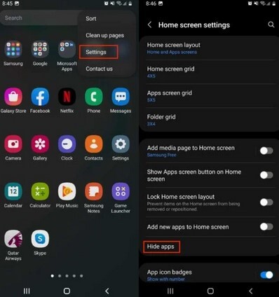 مرحله ۲: روی تنظیمات (Settings) رفته و سپس روی گزینه Hide apps (مخفی کردن) ضربه بزنید.