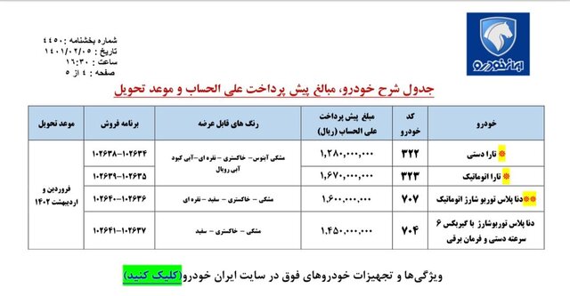 گروه صنعتی ایرانخودرو در دومین طرح پیشفروش یکساله محصولات خود در سال جدید و همزمان با پنجمین طرح حمایت قانون خانواده چهار محصول خود را عرضه کرده است.