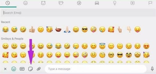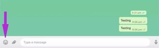 قدم سوم: روی آیکون ایموجی در پایین چت کلیک کنید.