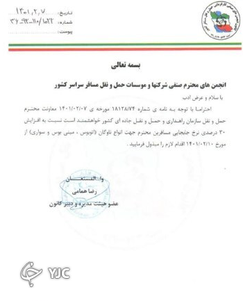 طبق اعلام کانون انجمنهای صنفی حمل و نقل مسافری از امروز ۱۰ اردیبهشت، شرکتهای حمل و نقلی مجاز به افزایش ۳۰ درصدی نرخهای کرایه خود هستند.