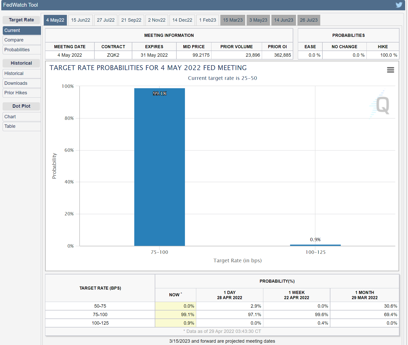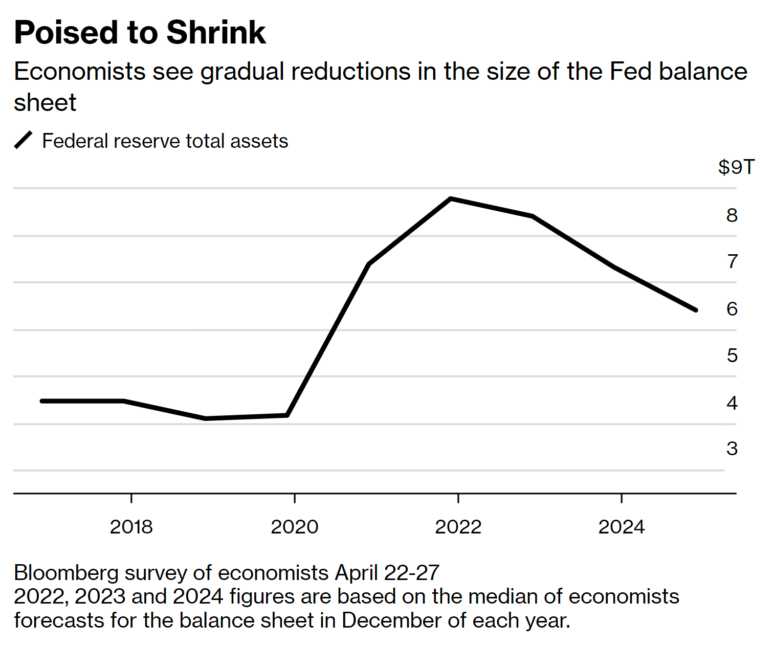 پیش بینی می شود که فدرال رزرو نرخ بهره را به میزان نیم درصد افزایش دهد. همچنین کارشناسان بر این باورند که فدرال رزرو قصد دارد طی سه سال آینده ترازنامه مالی خود را از سطح فعلی در 8.8 تریلیون دلار به 6.4 تریلیون دلار کاهش دهد.