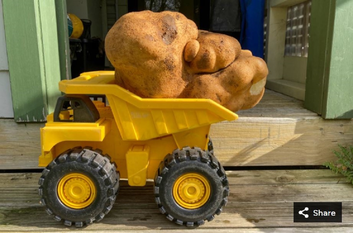 زن و شوهری نیوزلندی سیب زمینیای در حیات خانه شان پرورش دادند که به اندازهی یک سگ کوچک است. آنها میگویند وزن سیب زمینی ۷.۹ کیلوگرم بوده است و از رکورد قبلی که حدود ۵ کیلو بوده سنگینتر است.