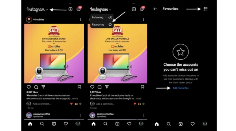 فید Favorites پستهای دوستان، اینفلوئنسرها و یا هر کسی که قصد دارید به لیست اضافه کنید را نمایش میدهد. افزودن کاربران به این لیست باعث میشود که این حسابها در بالای فید Home شما نمایش داده شود و همچنین به ترتیب زمانی مرتب شوند. در حال حاضر شما نمیتوانید بیش از ۵۰ کاربر را به این لیست اضافه کنید و ممکن است طبق نیاز کاربران این تعداد در آینده توسط اینستاگرام افزایش یابد.