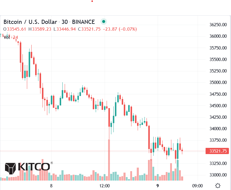 بیت کوین در معاملات صبحگاه امروز به 33,266 دلار سقوط کرد و پایین ترین سطح ژانویه در عدد 32,951 دلار را آزمایش کرد. در صورت سقوط بیت کوین به زیر این سطح کمترین قیمت از جولای سال گذشته لمس خواهد شد.