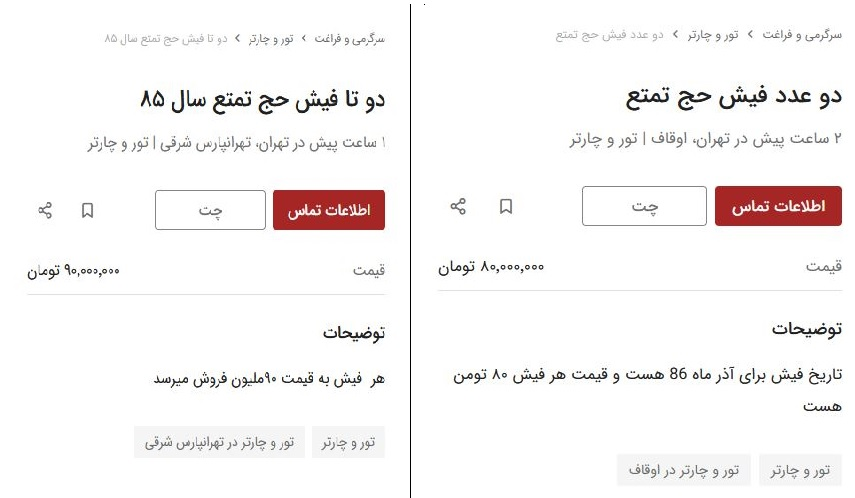 فروش فیش حج با قیمت‌های مختلف در برخی از سایت‌ها