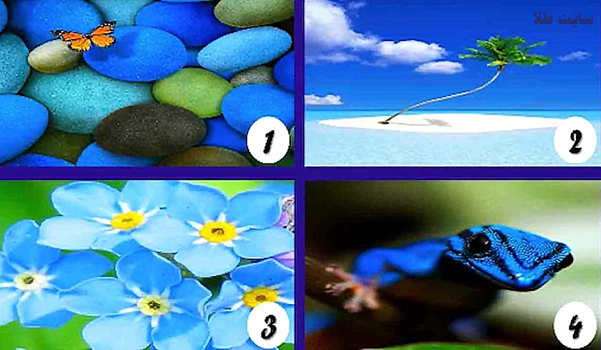 این تست برخی از قسمت های پنهان درون وشخصیتتان را آشکارمیکند. در عکس 4 تصویر با رنگ های آبی کنار هم قرار گرفته اند، یک تصویر را انتخاب کنید.