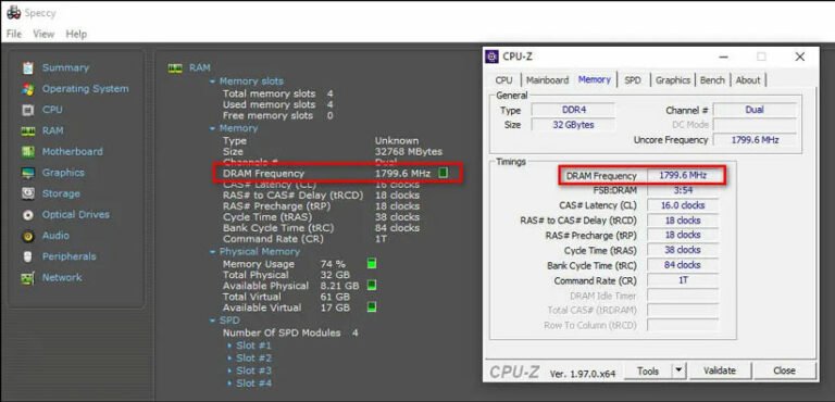 اما واقعیت این است که هر دو برنامه‌ی CPU-Z و Speccy سرعت ۱۷۹۹.۶ گیگاهرتز را به عنوان سرعت رم موردنظر به نمایش گذاشته‌اند. اگر عدد اعشاری را نادیده بگیریم، روی هم رفته این نصف سرعت واقعی رم موردنظر است. با این حال، چنین چیزی کاملا طبیعی است و رم موردنظر هیچ مشکلی ندارد. اما این اعداد به آن روشی که شما عادت دارید و آشنا هستید، ارائه نمی‌شود.