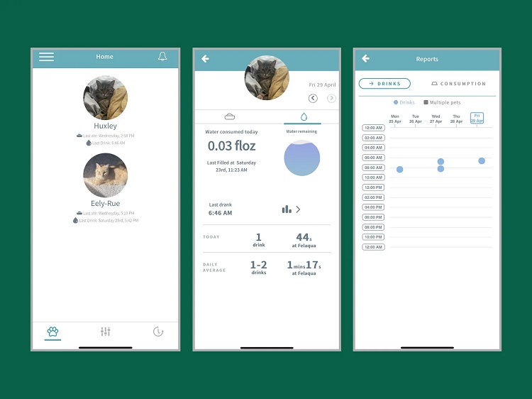 این کاسه هوشمند اطلاعاتی مانند آخرین زمان نوشیدن، مقدار نوشیدنی مصرف شده توسط هر گربه و میانگین مصرف روزانه را در اختیار کاربران قرار میدهد. همچنین یک نمودار تصویری از مقدار آب باقی مانده در مخزن را نیز به شما نشان میدهد. Felaqua از یک کاسه کم عمق و پهن تشکیل شده است. این کاسه به یک مخزن یک لیتری متصل است که در صورت خالی شدن ظرف، آن را بصورت خودکار پر میکند. کاسه به راحتی خارج و تمیز میشود. هدف از طراحی چنین محصولی فقط اطلاع از نوشیدن حیوانات خانگی نیست، بلکه آشنایی با روتین نوشیدن گربهها و تغییر رفتار آنها است.