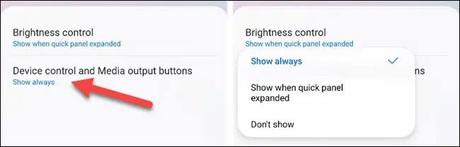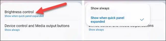 اول از همه میتوانید مشخص کنید که اسلایدر روشنایی نمایشگر چه زمانی به نمایش در بیاید. از بین دو گزینهی نمایش در تمام شرایط یا نمایش در حالتی که تنظیمات سریع به طور کامل باز شده، میتوانید دست به انتخاب بزنید.