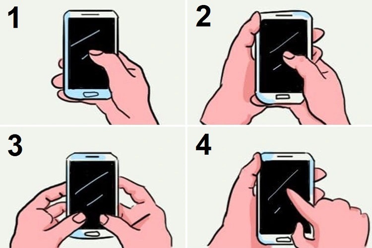 اول به تصویر زیر نگاه کنید و ببینید کدام یک از آنها طوری است که شما تلفن همراه تان را در دست میگیرید. با خودتان صادق باشید و همانی را انتخاب کنید که بیشترین نزدیکی را به شما دارد.
