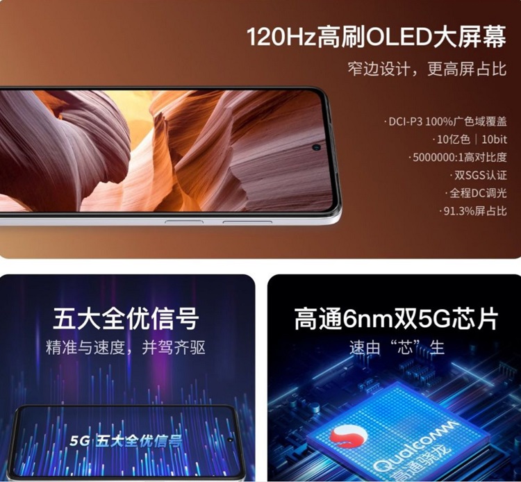 این نمایشگر از طیف رنگی ۱۰۰% NTSC، نسبت کنتراست بالای ۵,۰۰۰,۰۰۰:۱، HBM sunlight، global DC dimming و گواهینامه SGS پشتیبانی میکند. این گوشی هوشمند از چیپست اسنپدارگون ۶۹۵ کوالکام به همراه ۸ گیگابایت رم و ۱۲۸ گیگابایت حافظه داخلی پشتیبانی میکند. G82 5G فقط با رم ۶ گیگابایتی ارائه میشود. این دستگاه دارای چند بهینه سازی کاربردی مانند لمس یک کلید و حالت ساده است که برای افراد سالمند مناسب است.