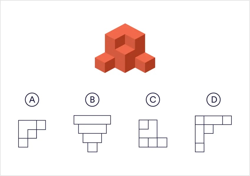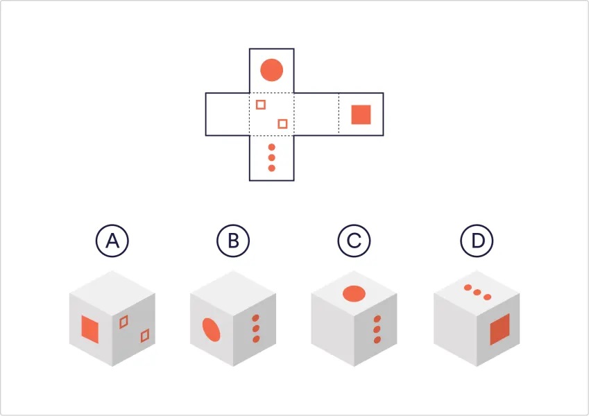 برای دریافت پاسخ باید مکعب را در ذهن خود تا کنید. با انجام این کار، می بینید که 3 دایره و مربع در مجاورت یکدیگر قرار می گیرند و یک مربع خالی در مجاورت هر دو وجود خواهد داشت. پاسخ صحیح Dاست.