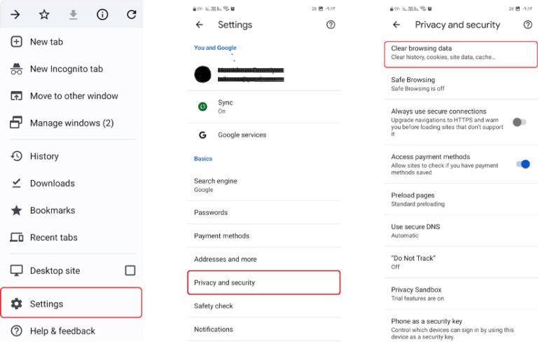 این گزینه همچنین از طریق ورود به منوی تنظیمات، بخش Privacy and Security و Clear browsing data در دسترس قرار دارد.