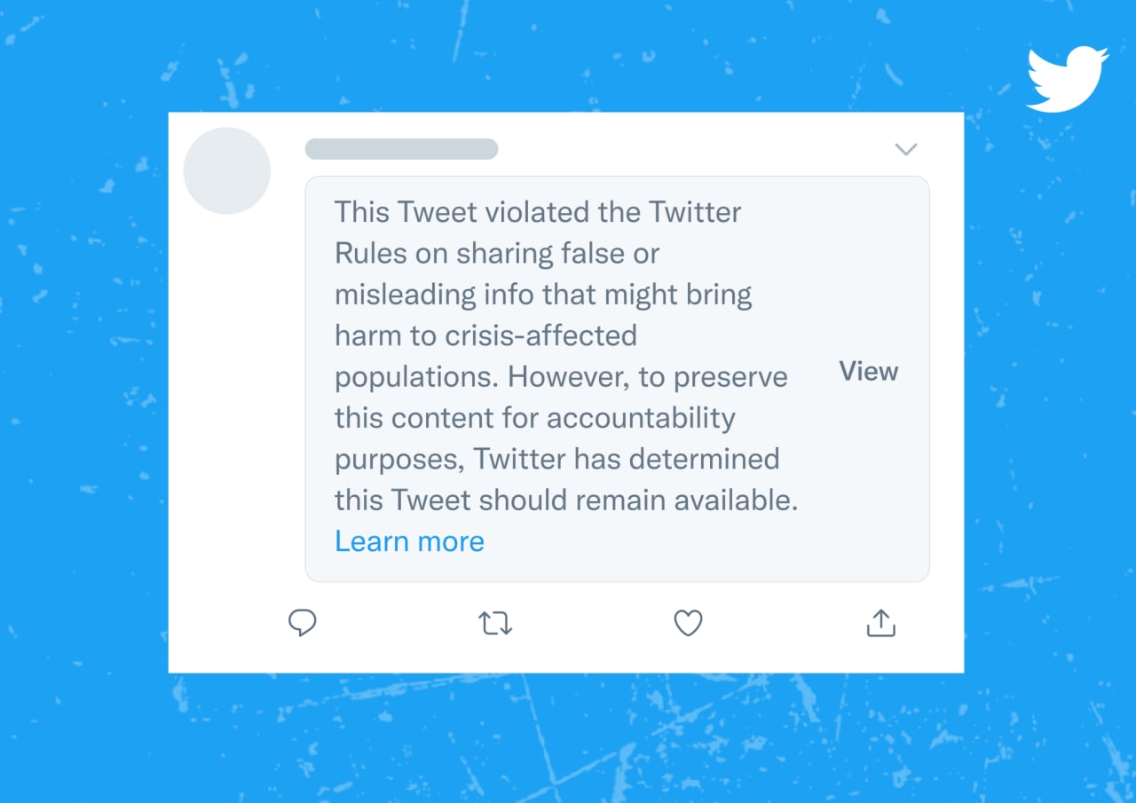 با این وجود، توییتر این اخطار را کاملا به عنوان یک «هشدار» ارائه میکند و کاربران با کلیک روی آن، میتوانند توییت را مشاهده کنند.