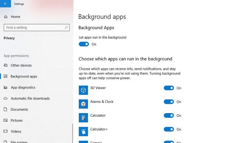 در بخش Let apps run in the background، لیست همه‌ی برنامه‌هایی که در پیش‌زمینه در حال فعالیت هستند به شما نشان داده می‌شود. شما می‌توانید آن‌ها را غیرفعال کنید یا برنامه‌های مد نظرتان را از این لیست خارج کنید.
