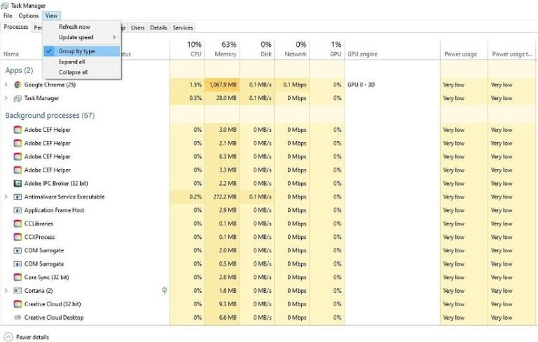 با دنبال کردن مراحل فوق، فرآیندهای فعال در پس‌زمینه به طور جداگانه گروه بندی می‌شوند. به همین ترتیب، می‌توانید لیست نشان داده شده را بررسی کرده و فرآیندهایی که منابع زیادی را مورد مصرف قرار می‌دهند، غیرفعال کنید. برای متوقف کردن هر فرآیندی کافی است تا روی همان راست کلیک کرده و گزینه‌ی Task End را انتخاب کنید.