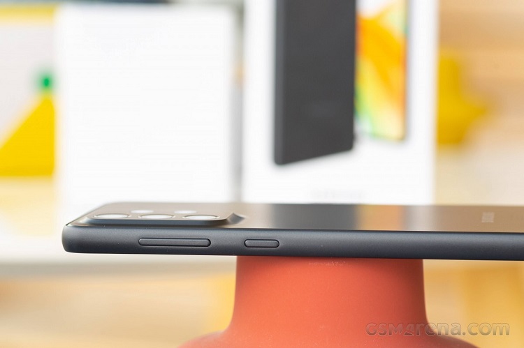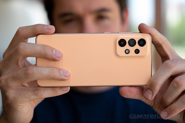 قسمت پشتی دارای جزیره دوربین ۵ حفرهای است که به آرامی از بقیه قسمتهای پشتی بالا میرود و یک شکل یکپارچه را ایجاد میکند. ستون اول شامل سنسور اصلی ۴۸ مگاپیکسلی، سنسور فوق عریض ۸ مگاپیکسلی و سنسور عمق ۲ مگاپیکسلی است. دوربین ماکرو ۵ مگاپیکسلی و فلاش LED در سمت راست قرار دارند. این گوشی دارای ابعاد ۱۵۹.۷ در ۷۴ در ۸.۱ میلیمتر است و وزنی معادل ۱۸۶ گرم دارد. A۳۳ بدنه ضدآب محکمی دارد و تجربه چسبندگی بسیار خوبی را ارائه میدهد.