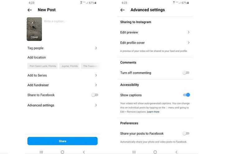 این ویژگی برای تولید کنندگان محتوا نیز بسیار مفید است. برای تولید یک ویدئو دیگر مجبور نیستید متن آن‌ها را رونویسی کرده و به ویدئو اضافه کنید. برای فعال و غیر فعال کردن زیرنویس پست‌های ایجاد شده مراحل زیر را دنبال کنید: