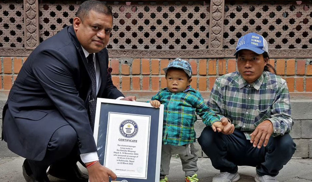 دور بهادر خاپانجای (Dor Bahadur Khapangi) که فقط ۷۳.۴۳ سانتی متر قد دارد، توسط برادر بزرگترش برای دریافت گواهی قد کوتاه ترین نوجوان جهان به کاتماندو، پایتخت نپال رفت. مدیر عامل هیئت گردشگری، گواهی قاب شده ای را که تا روی سینه او آمده بود، در مراسمی که توسط رکوردهای جهانی گینس برگزار شد، به خاپانجای داد. او که در سال ۲۰۰۴ در نپال به دنیا آمده، با گواهینامه خود در مقابل جمعی از عکاسان و رسانه های حاضر در مراسم عکس گرفت.