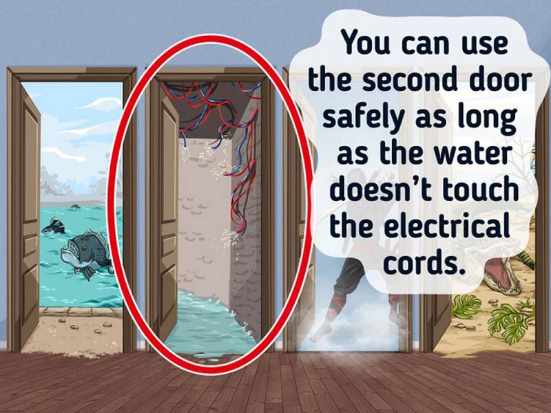 تا زمانی که آب با سیم های برق تماس نداشته باشد، میتوان با خیال راحت از در دوم عبور کرد.