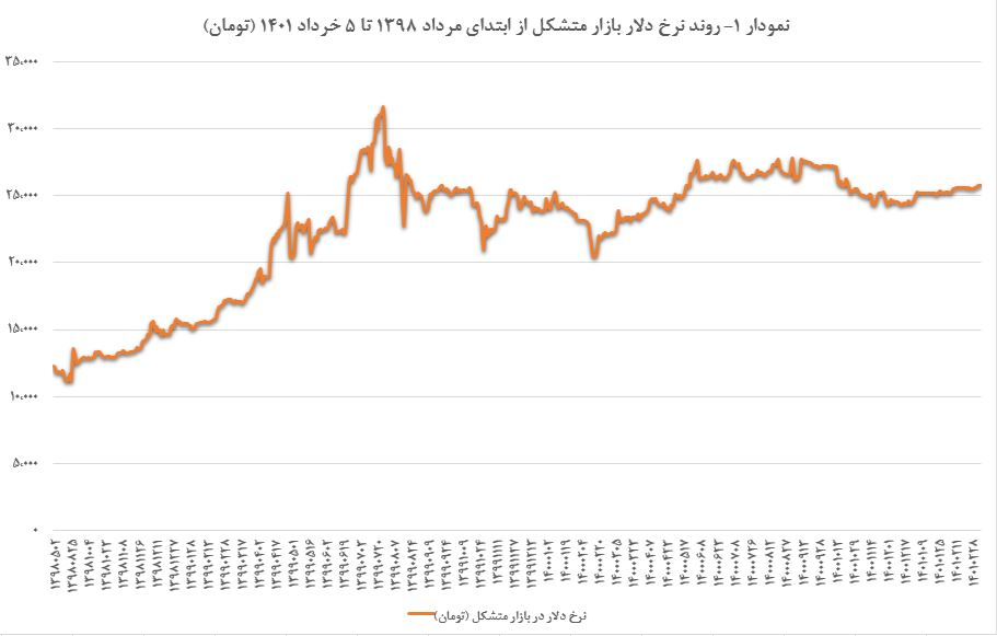 البته در دی‌ماه ۱۳۹۹ و اردیبهشت‌ماه سال ۱۴۰۰ قیمت دلار در بازار متشکل به ۲۰ هزار تومان هم رسید، اما دوباره افزایش یافت.