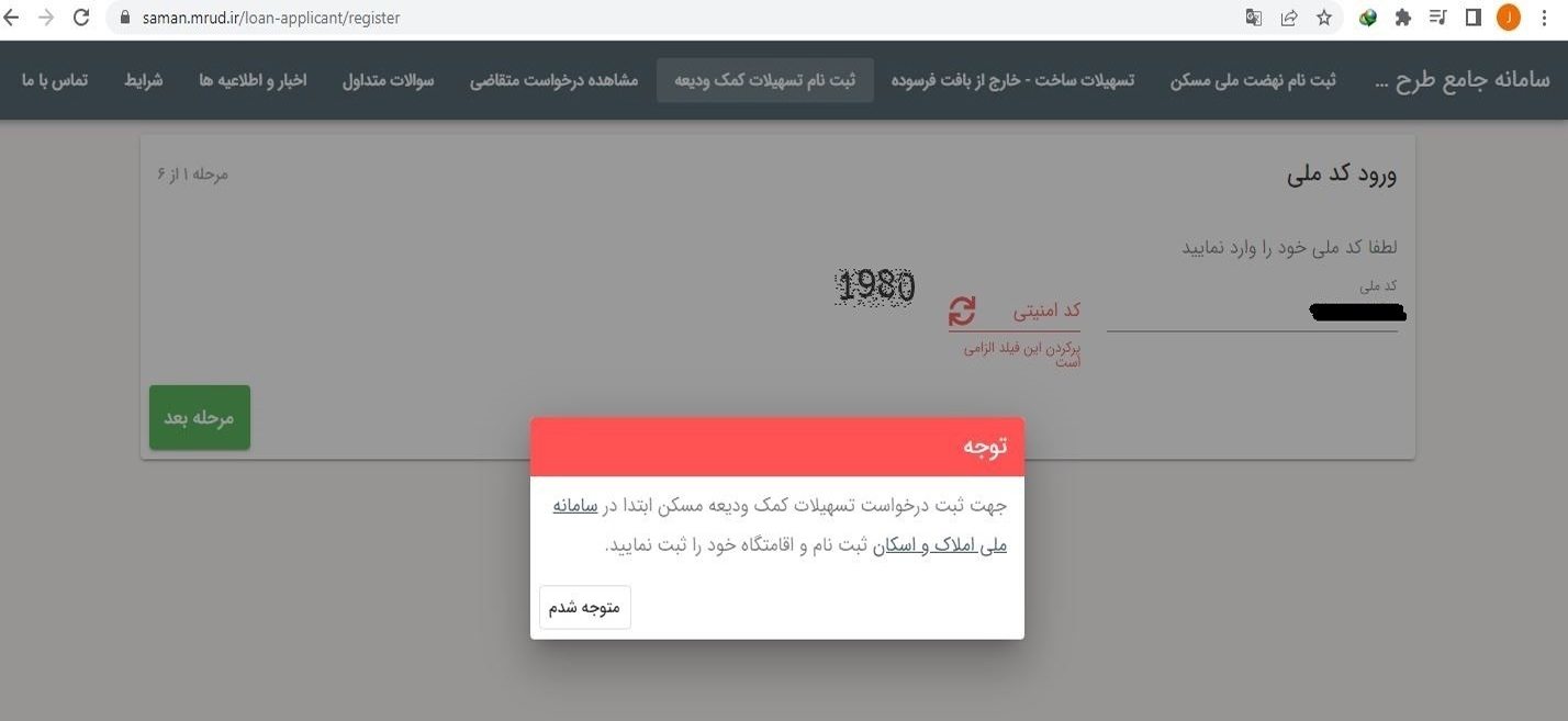 متقاضیان دریافت تسهیلات ودیعه مسکن، امسال با ورود به سامانه جامع طرح‌های حمایتی مسکن، در هنگام ثبت نام متوجه می‌شوند که در ابتدا باید اطلاعات خود را در سامانه املاک و اسکان ثبت کنند و در صورتی که پیش از این ثبت نام نکرده باشند، امکان ورود به سامانه را نخواهند داشت.