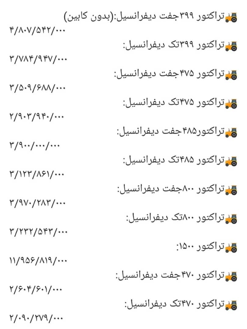 قیمتهای جدید محصولات کارخانه تراکتورسازی با افزایش ۲۰ درصدی اعلام شد.