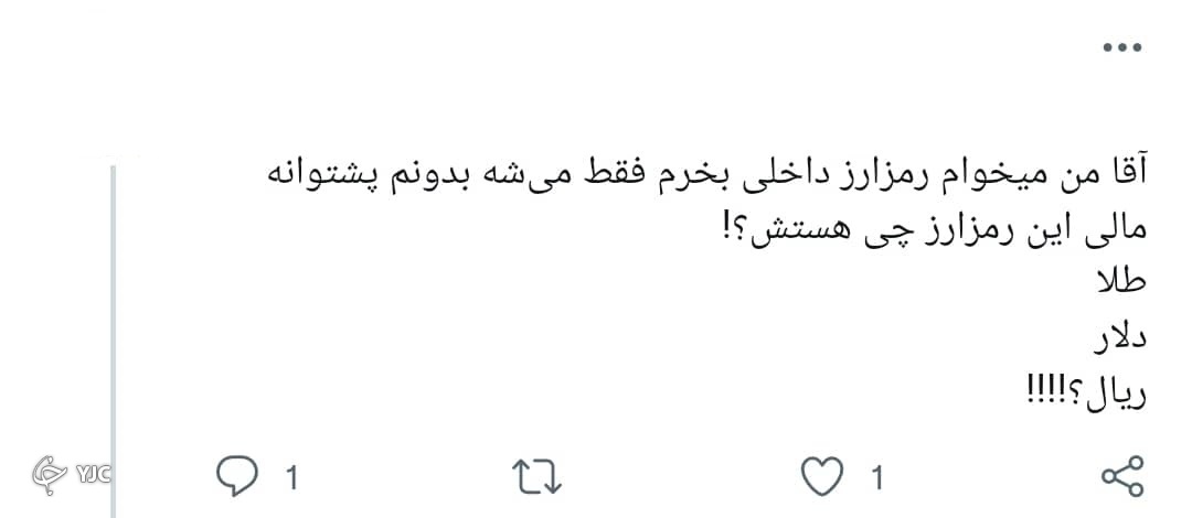 آقای محسن رضایی، معاون اقتصای رئیس جمهور آذر پارسال از تدوین قانونی برای بازار رمز ارز ملی و رونمایی آن در همان سال خبر داده بود. همچنین آقای مهدی طغیانی، عضو کمیسیون اقتصادی مجلس، ۷ خرداد گفته بود: موضوع قانون گذاری در بازار رمز ارزها، در دولت درحال بررسی است و ضرب الاجلی برای جمع بندی آن گذاشته اند، اما کماکان اتفاقی نیفتاده است. دولت هنوز لایحهای برای رمزارزها به مجلس نفرستاده است.