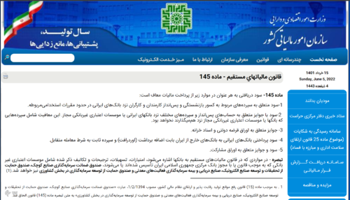 همچنین بر اساس بند دوم ماده ۱۴۵ قانون مالیاتهای مستقیم، سود سپرده بانکی اشخاص حقیقی از پرداخت مالیات معاف است.