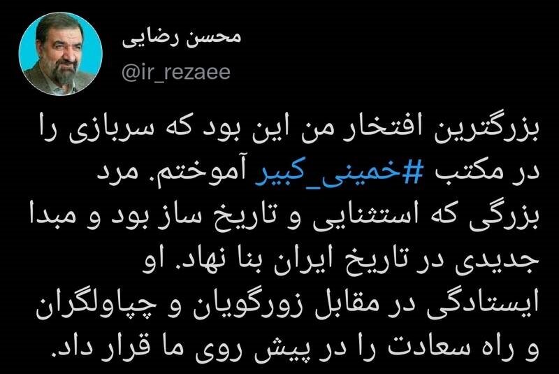 سرلشکر محسن رضایی ، فرمانده سپاه دوران جنگ تحمیلی نوشت: