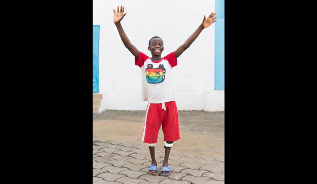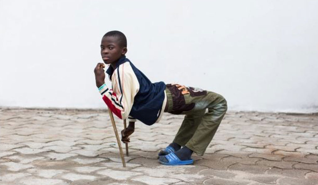 پسر آفریقایی که از وسط خم شده بود اکنون می تواند راست بایستد