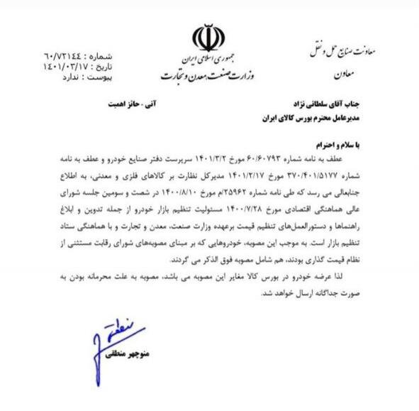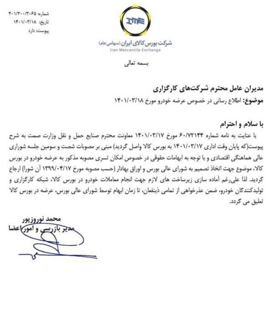به دستور وزارت صمت عرضه خودرو در بورس کالا تعلیق شد